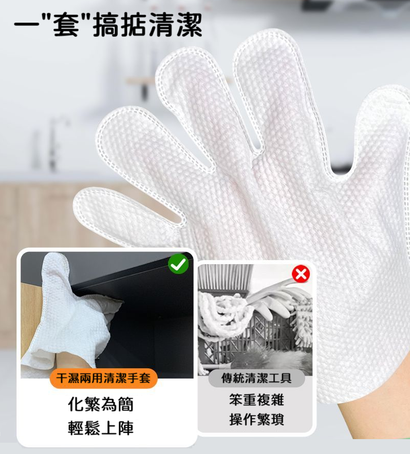 DGT-01, 一次性乾濕兩用清潔手套, 五指型, 10隻/包