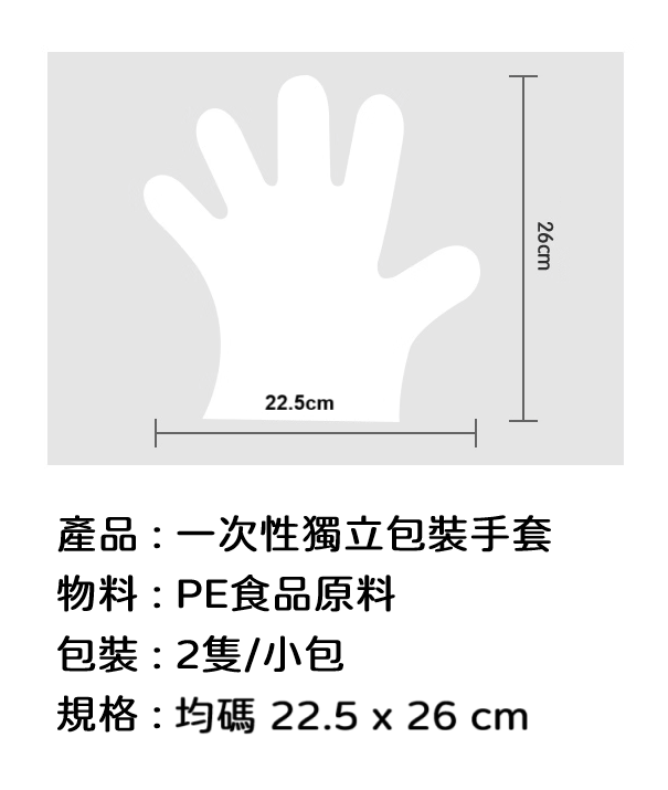 DPE050, 一次性透明手套, 獨立包裝, 1對/小包, 50小包/袋