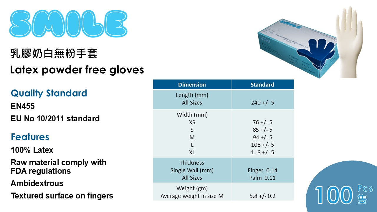 77-M, 乳膠奶白無粉手套, M 碼, 100隻/盒